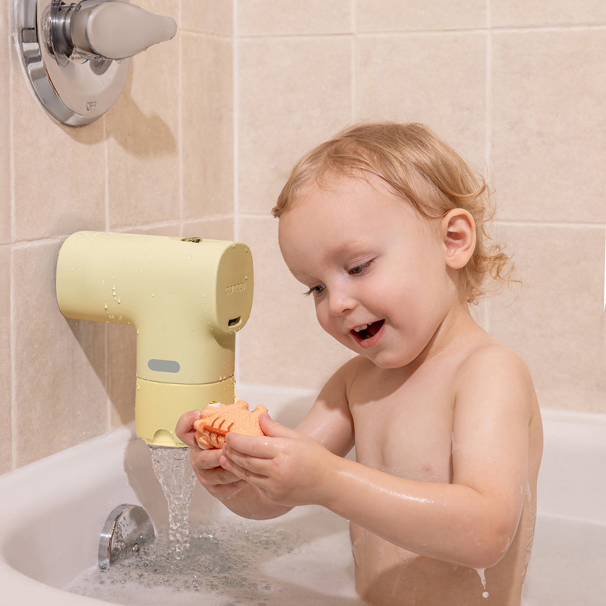 Safer bath time, with a spout cover & temperature indicator